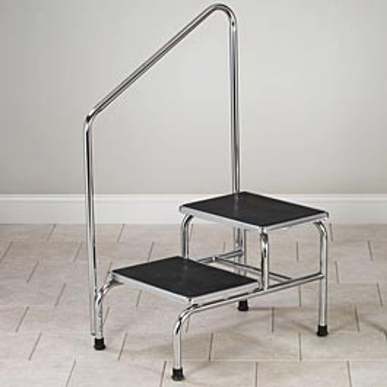 BREWER Two-Step Stool with handrail MSRP: Now: $371.00 Was: Two-Step Stool with handrail Top Step Dimensions : 17.25"x12" WxL First Step : 10" High Second Step : 17.25" High From Floor Durable Chrome Finish Extra Wide and Deep Steps. Reinforced Base and Top. First Step 10" High x 12.25" x 17.25" W,... MSRP: Now: $371.00 Was: